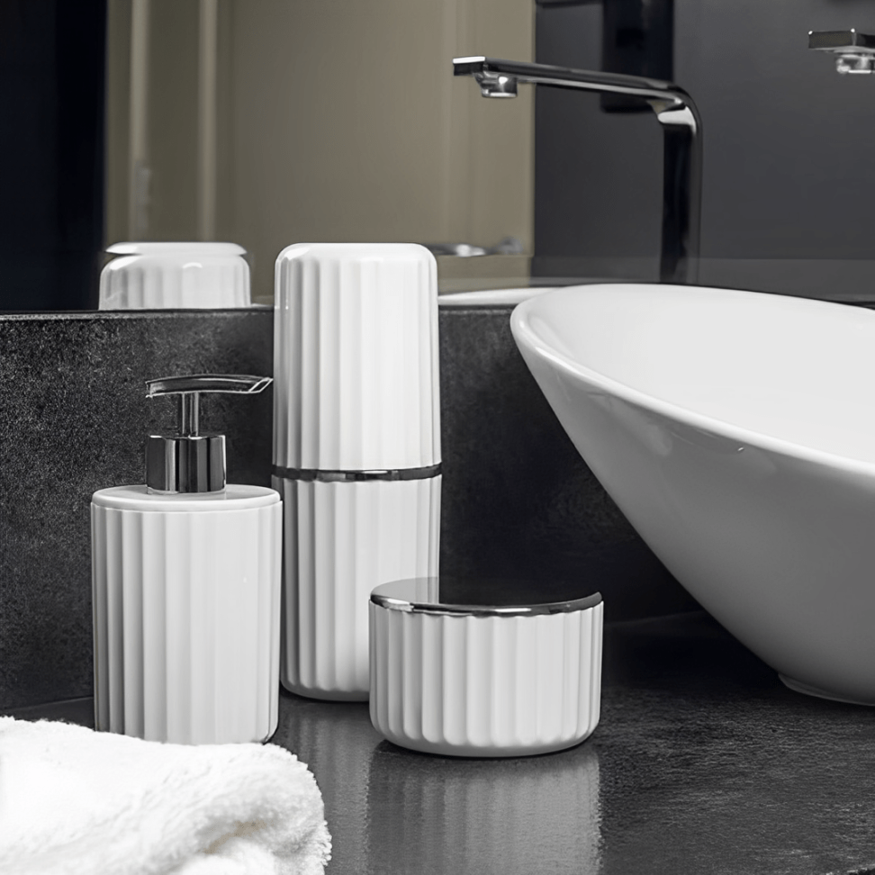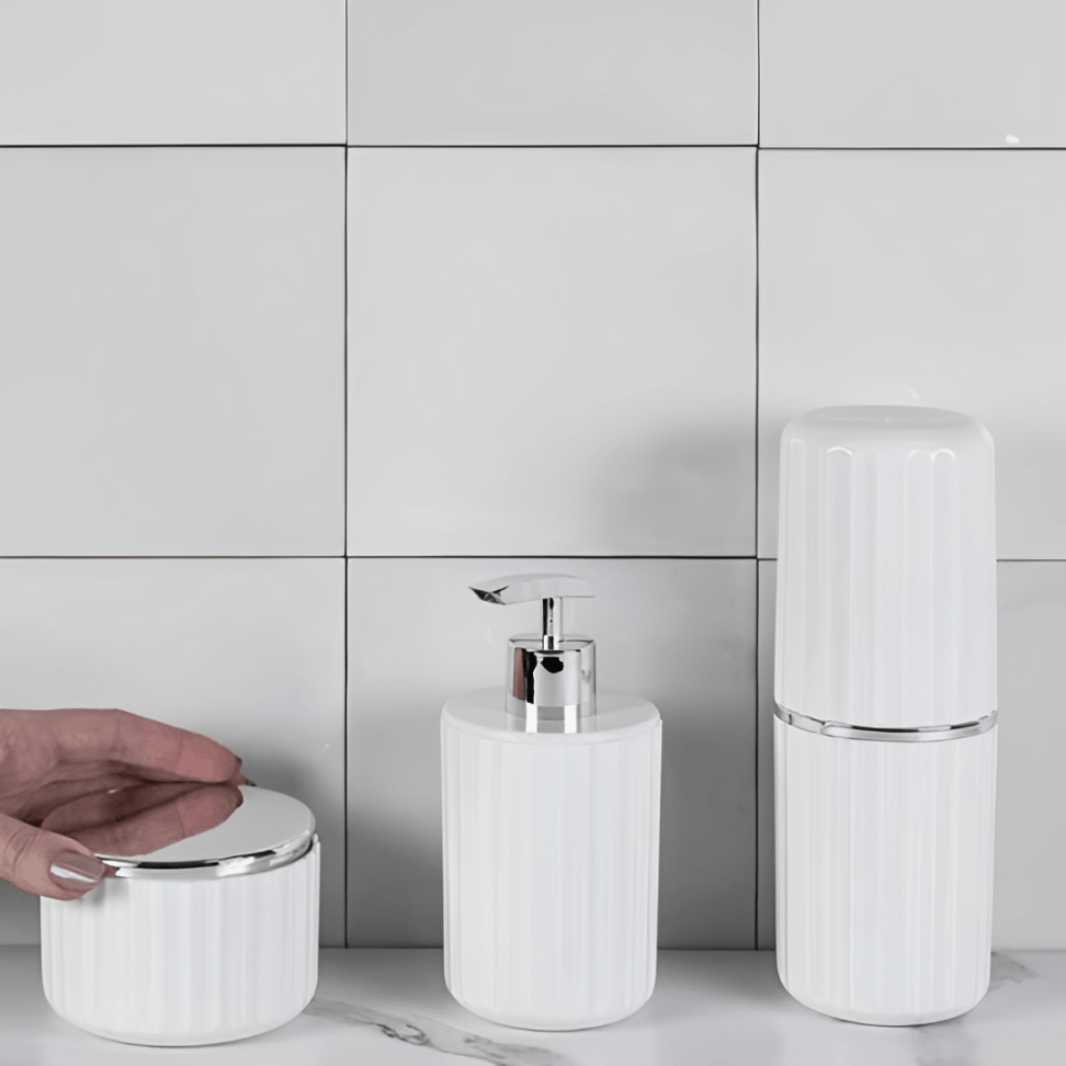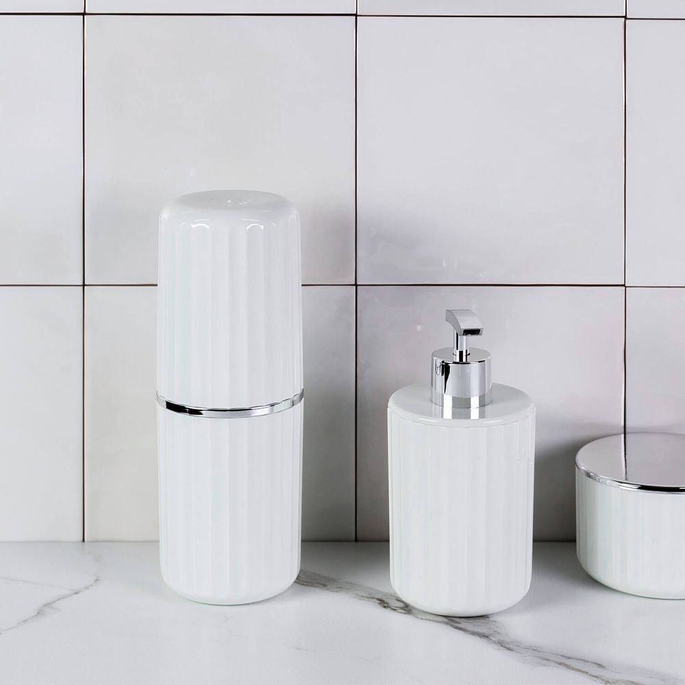 🤍 Porta Escovas Groove Branco e Cromado – Elegância e Função em uma Peça Moderna