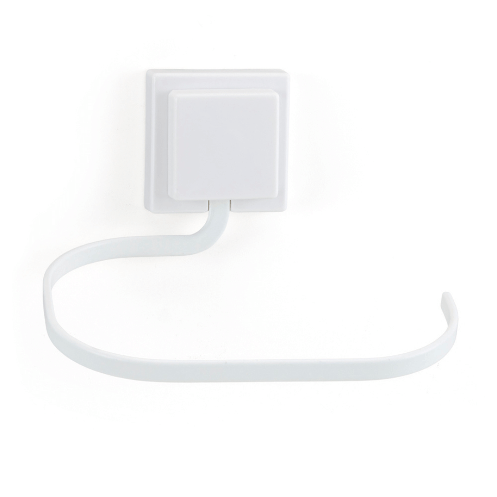 - Confeccionado em plástico e aço de qualidade, esse suporte porta toalhas de rosto ainda possui um acabamento na cor branca que confere beleza única;