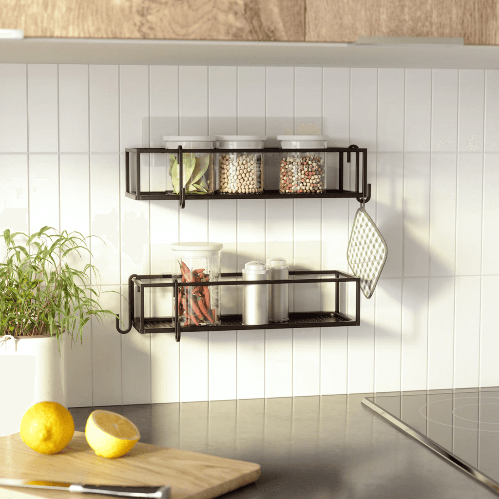 Adicione armazenamento elevado ao seu espaço de banho ou chuveiro com a Prateleira Porta Shampoo Cubiko Preta 2 Peças.