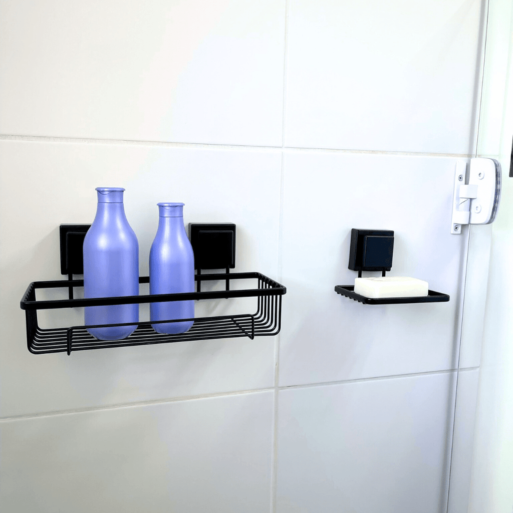 Saboneteira de Parede com Ventosa 12 cm Preto Fosco Fácil Instalação