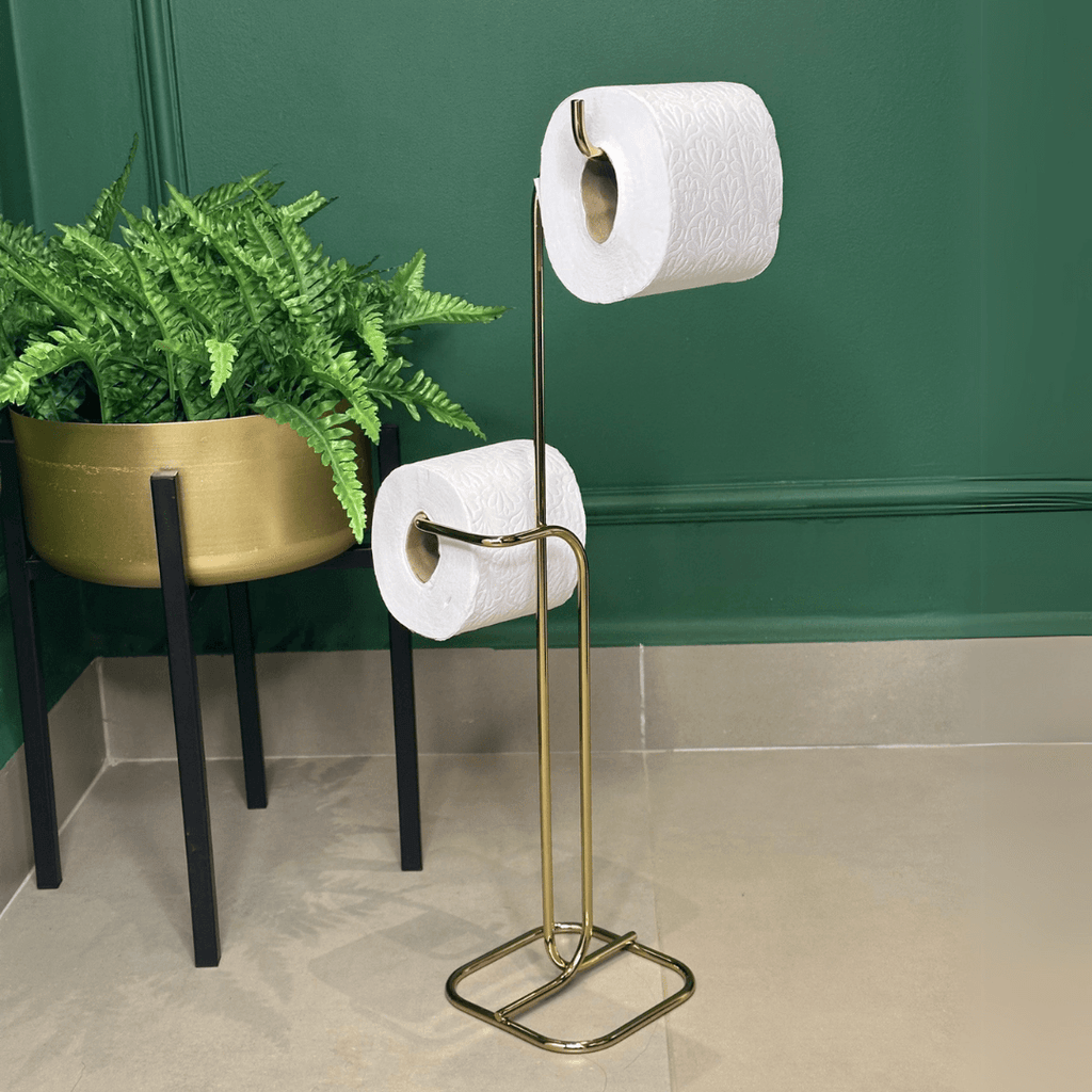 O Suporte para Papel Higiênico de Chão para 2 Rolos Dourado é uma opção ideal para quem busca funcionalidade sem abrir mão do estilo.