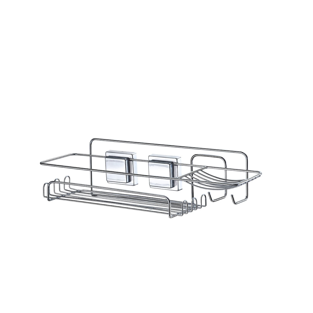 Organize os acessórios de banho em sua caixa de forma bem mais prática e eficiente com o Suporte Porta Shampoo Retangular com Ventosa Cromado.
