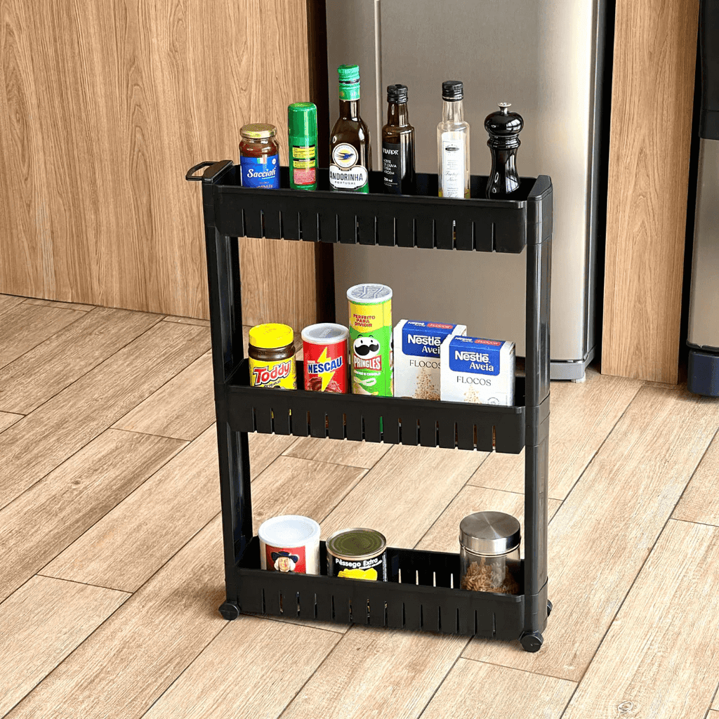 Carrinho Organizador Prateleira Multiuso Com Rodízios Preto