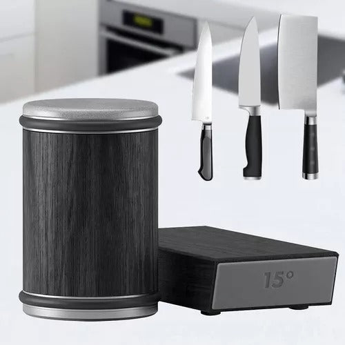 Mantenha suas facas afiadas como novas por muito, muito mais tempo com o Afiador de Facas Profissional com Base Magnética.