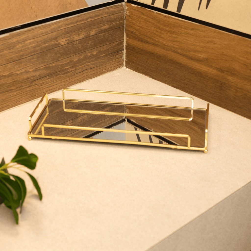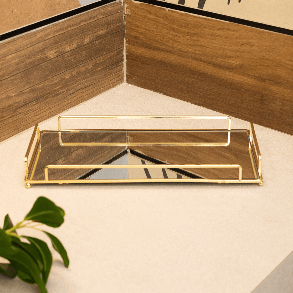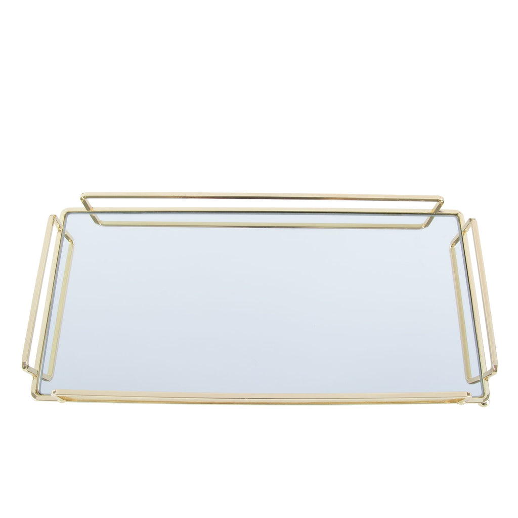 Bandeja Decorativa de Metal com Espelho Dourado 32cm