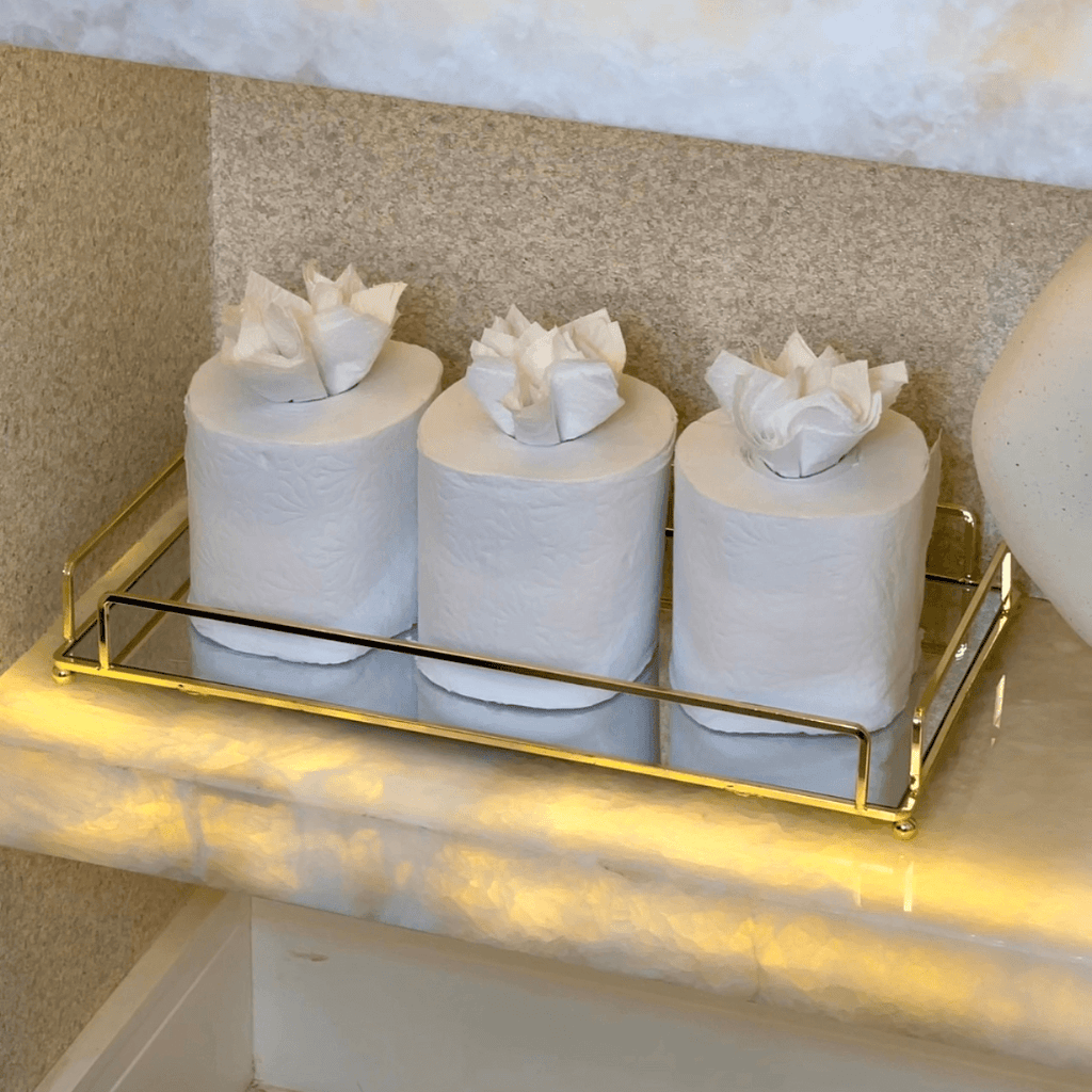 A Bandeja Decorativa de Metal com Espelho Dourado 32cm, faz toda a diferença na decoração de seu ambiente.