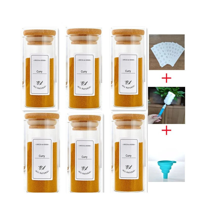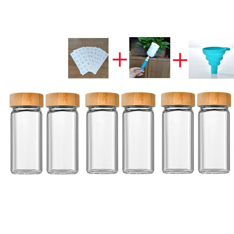 Frascos de Tempero de Armazenamento com Tampa de Bambu