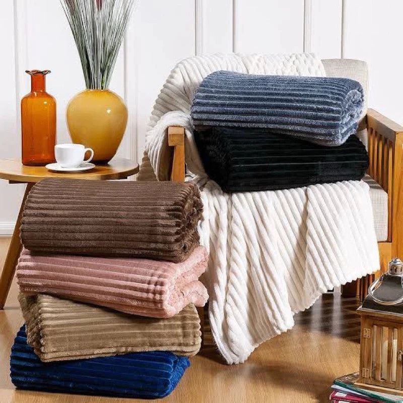 • 2x Mantas Caneladas Aveludadas para Inverno Ferrazi
