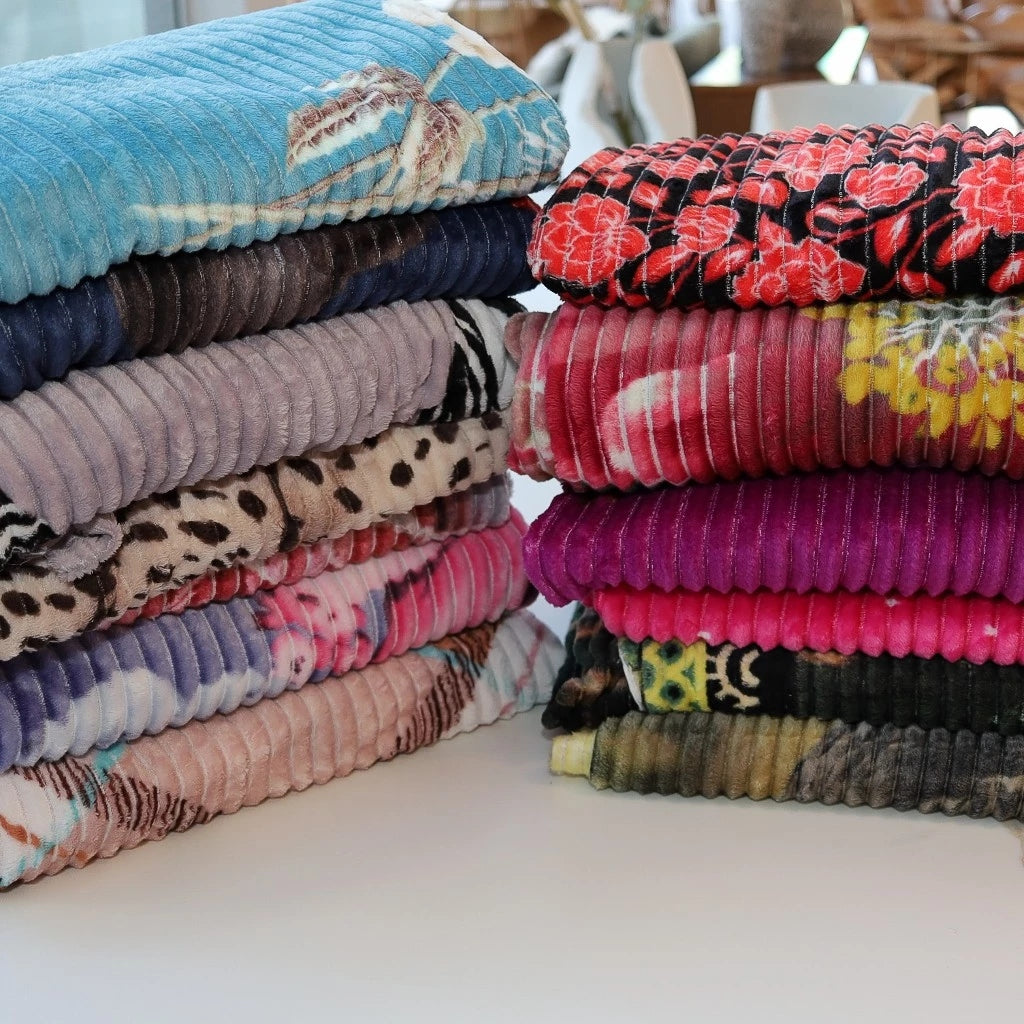 Confeccionadas com tecido de alta qualidade, as mantas possuem acabamento canelado e superfície aveludada, que garantem um toque suave e confortável à pele.