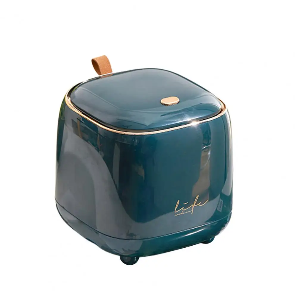 Sua tampa pressionável facilita a abertura e o fechamento, enquanto seu design compacto permite que ela se encaixe facilmente em espaços apertados, mantendo sua área organizada e livre de bagunça.