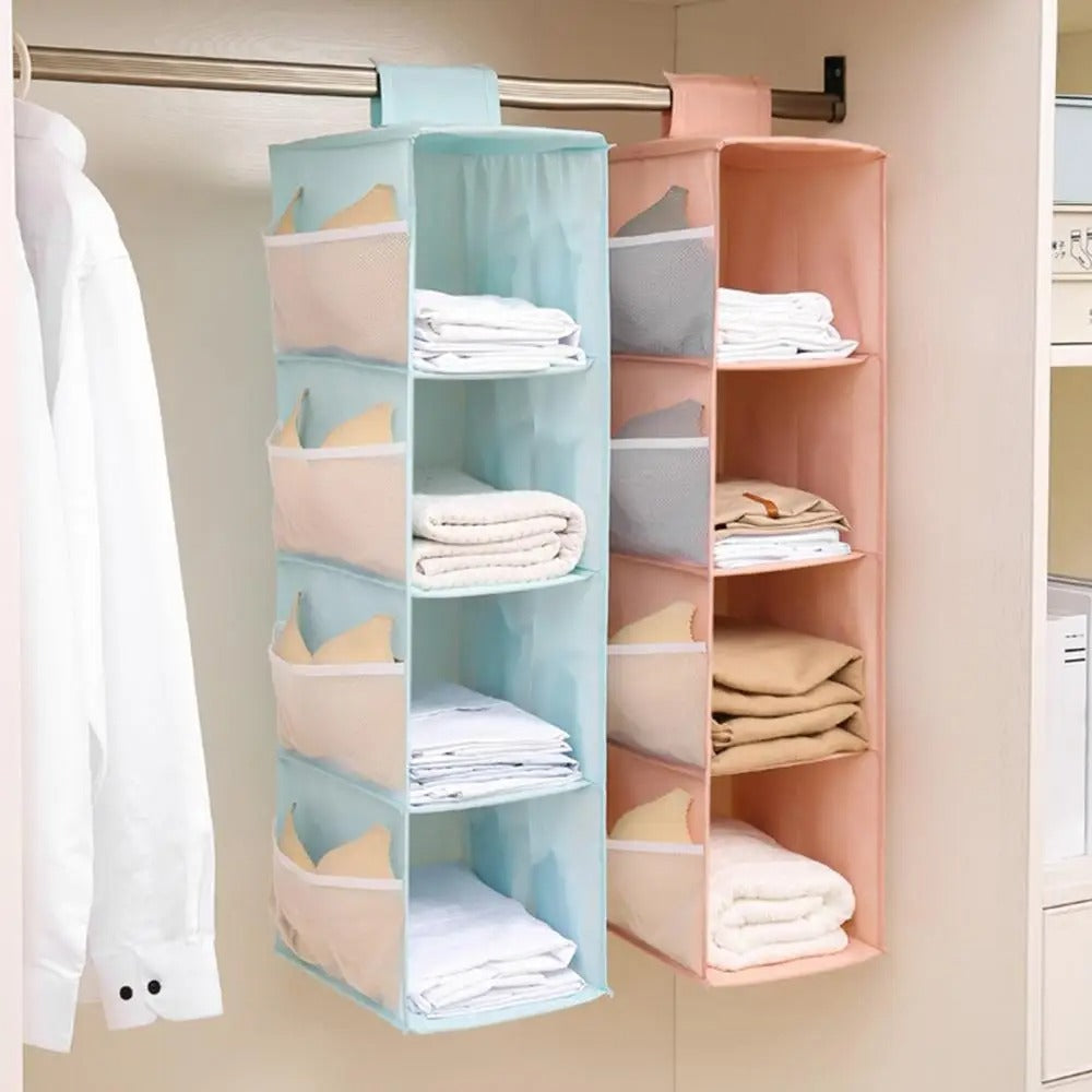 Este organizador oferece compartimentos específicos para diferentes tipos de roupas, permitindo que você as organize de maneira eficiente por categoria, facilitando na hora de encontrar o que precisa.