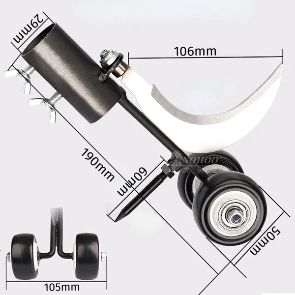 1- Foice Angulada: A lâmina de titanium é perfeita para eliminar as ervas daninhas que crescem nas fendas do seu passeio, seu formato anguloso garante que nenhum vestígio fique para trás.