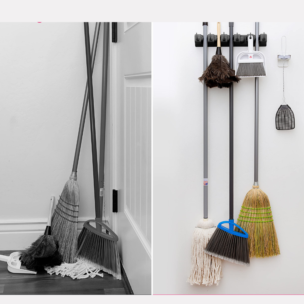 A construção resistente assegura que ele possa segurar com segurança suas vassouras, esfregões e outras ferramentas de limpeza sem deformar ou quebrar.